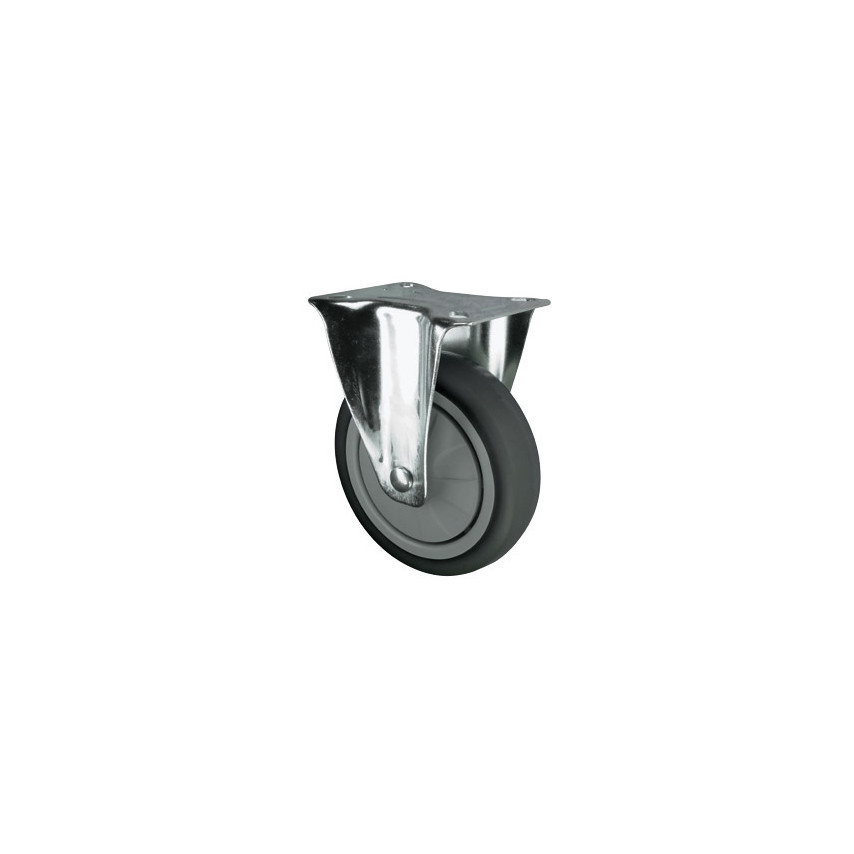 Préseltacél görgők általános kis- és közepes teljesítményű ipari vagy szervezeti felhasználásra. Szürke, nyomot nem hagyó, hőre lágyuló gumiból készült abronccsal szerelt görgők a manőverezést nagyban elősegítő golyóscsapággyal.