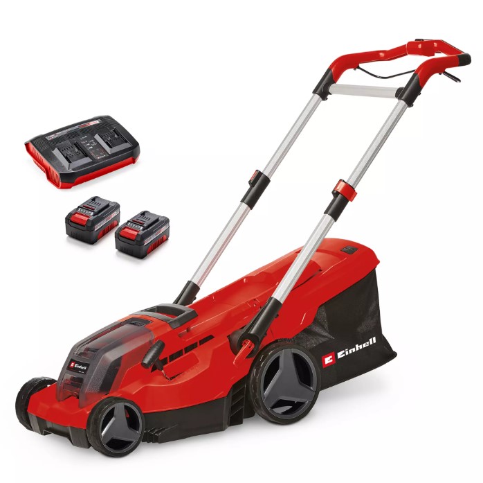 Az Einhell GP-CM 36/450 akkumulátoros fűnyírót semmi sem állíthatja meg: a kert összes szegletét szebbé varázsolhatja vele. Max. 450 m² nagyságú füves területekhez, két darab 4,0 Ah Power X-Change akkumulátorral üzemeltethető. A Power X-Change akkumulátorok a termékcsalád valamennyi Einhell készülékéhez használhatók. A töltöttségiszint-jelző három darab LED-je jelzi a még rendelkezésre álló energiatartalékot. A gyorstöltővel (Power X-Twincharger) pillanatok alatt feltöltheti az akkumulátorokat. A készüléket Einhell Brushless (szénkefe nélküli) motor hajtja. A szénkefe nélküli motorok nagyobb erőátvitelt és hosszabb üzemidőt garantálnak, mint a szénkefével gyártott társaik. Ezekre – online regisztrációt követően – 10 év jótállást vállalunk. A 25 és 75 milliméter között állítható, hatfokozatú vágásmagasságnak és a 38 centiméteres vágásszélességnek köszönhetően kedve szerint formázhatja a gyepet. A beépített lombseprűnek köszönhetően a szélekhez közel is lenyírhatja a füvet. A fűnyírót nagy felületű kerekekkel szerelték fel. Az ergonomikus kialakítású nyélnek és markolatnak köszönhetően a készülék használata rendkívül kényelmes. Mivel a nyél kihúzható, ezért a felhasználó mindig a saját igényeihez és adottságaihoz állíthatja a magasságot. A tolónyél összecsukható, így a fűnyíró praktikusan tárolható. A fogantyú segítségével a fűnyíró egyszerűen mozgatható és szállítható. Az alumíniumnyél könnyű, mégis rendkívül erős. A 45 liter űrtartalmú fűgyűjtő zsákot praktikus telítettségjelzővel szerelték fel. A gyári csomagolás tartalmaz egy akkumulátort és egy gyorstöltőt, valamint egy praktikus mulcsbetétet.