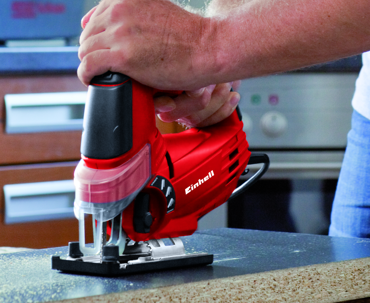 A TC-JS 85 E egy nagy teljesítményű fűrészgép, amely komolyabb fűrészelési munkák elvégzését teszi lehetővé, bármilyen anyaggal kelljen is dolgoznia. A 4 fokozatban állítható lengő előtolás és a löketszám-szabályozó elektronika egyedi anyagmegmunkálást tesz lehetővé. A fűrészlap cserjékor értékes időt takaríthat meg, hiszen a lapot szerszám nélkül kicserélheti. Az ergonomikus, Softgrip borítású markolatnak köszönhetően a TC-JS 85 egy nagyon jól kézreálló, könnyen kezelhető készülék. A levehető védőborítással ellátott, erős fűrésztalp óvja a munkadarabot és segíti a stabil vezetést. Mivel dönthető, ezáltal lehetővé teszi 45°-os gérvágások elvégzését is. Az optimális felületminőségről a rendkívül hatékony felszakadásgátló gondoskodik. A porelszívó az adapterrel és a lekapcsolható porfújó funkcióval tiszta munkavégzést garantál, a mellékelt fafűrészlap pedig lehetővé teszi, hogy azonnal megkezdhesse a munkát a készülékkel. A párhuzamos ütköző leegyszerűsíti az ellenőrzött és méretpontos fűrészelést. A TH-JS 85 rendezetten és biztonságosan tárolható a praktikus szállító és tartó kofferben.