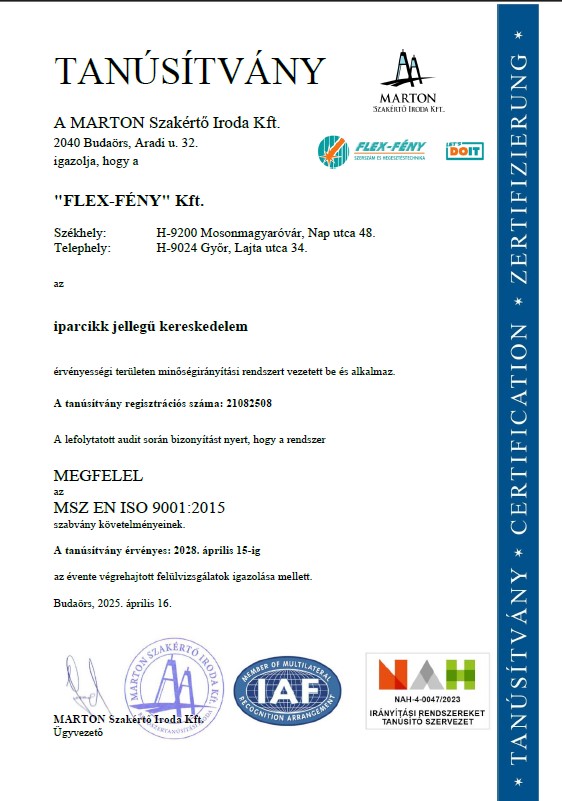 ISO 9001:2015 Tanúsítvány 2019.05.20.