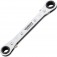 Króm-vanádium acélból gyártott kulcsok, 12-szögű fejekkel. Szűk helyekre tervezve. Mindkét oldalon beépített racsnival a nagyobb termelékenység érdekében. A racsnik forgásiránya a kulcs oldalán található irányváltókkal változtatható.