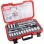 1/2" Négyszög meghajtó, 30 darabos metrikus készlet Ken-Grip®: 8, 9, 10, 11, 12, 13, 14, 15, 16, 17, 18, 19, 20, 21, 22,23, 24, 25, 26, 27, 30 és 32mm. Gyertyakulcsok: M10 és M14. Kiegészít'k: gyorskioldós, irányváltós racsnis hajtószár, T-hajtószár, univerzális csukló, 75, 125 és 250 mm-es standard hosszabbitó. Patentra csukódó er's tarolódoboz, ergonomikus Fogantyú, lakatfül.