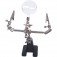 Ideális segédeszköz precíziós forrasztáshoz, modellkészítéshez stb. Az univerzális állíthatóságot 10 mozgatható csatlakozás segíti elő. 50 mm átmérőjű 2.5 x nagyító. Két rugóterhelésű krokodilcsipesz. 8 mm vastagságú tárgyak befogásához. Stabil, tömör öntöttvas talp. Az összes többi fémalkatrész krómozott és korrózióálló.