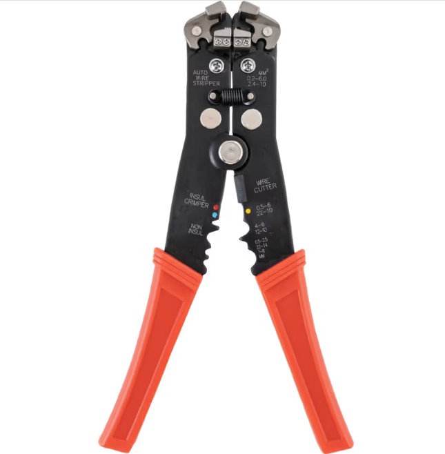 Többcélú szerszám, ötvözött acél vágóél minden típusú huzal vágásához, csupaszításához és saruzásához. Automata kábelcsupaszító. Saruzófogó: nem szigetelt saruk: 1.5, 2.5 és 4-6mm (12 - 10, 22 - 18 és 16 - 14 AWG); szigetelt saruk: 1.5, 2.5 és 6mm (10 - 22 AWG). Kapacitás: 0.13 - 6.0mm2.