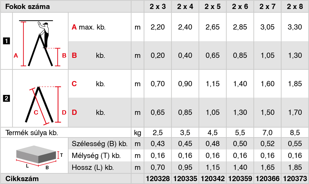 • Könnyû, mindkét oldalon járható alumínium állólétra a legkülönbözõbb tevékenységekhez.