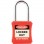 Kompakt, magas biztonsági besorolású lakatok, felhasználóbarát tervezés. Műanyag, gumírozott test a biztonságosabb fogás érdekében. Egyedi kulcsos, 6 csapos precíziós zár, amely nem engedi kiesni a kulcsot amig nem kerül bezárásra. Korróziómentes, szigetelt, szikramentes, ellenáll kémiai anyagoknak. Színkódolt a könnyebb azonosítás végett, vílágító címkével. Külön kulcssal az optimális biztonság érdekében. Minden egyes lakat külön van csomagolva egy kulccsal és egy kulcstartóval. Méretek: Test vastagsága: 25 x 38mm. Lakatfül ámérője x hézag: 6.5 x 38mm.