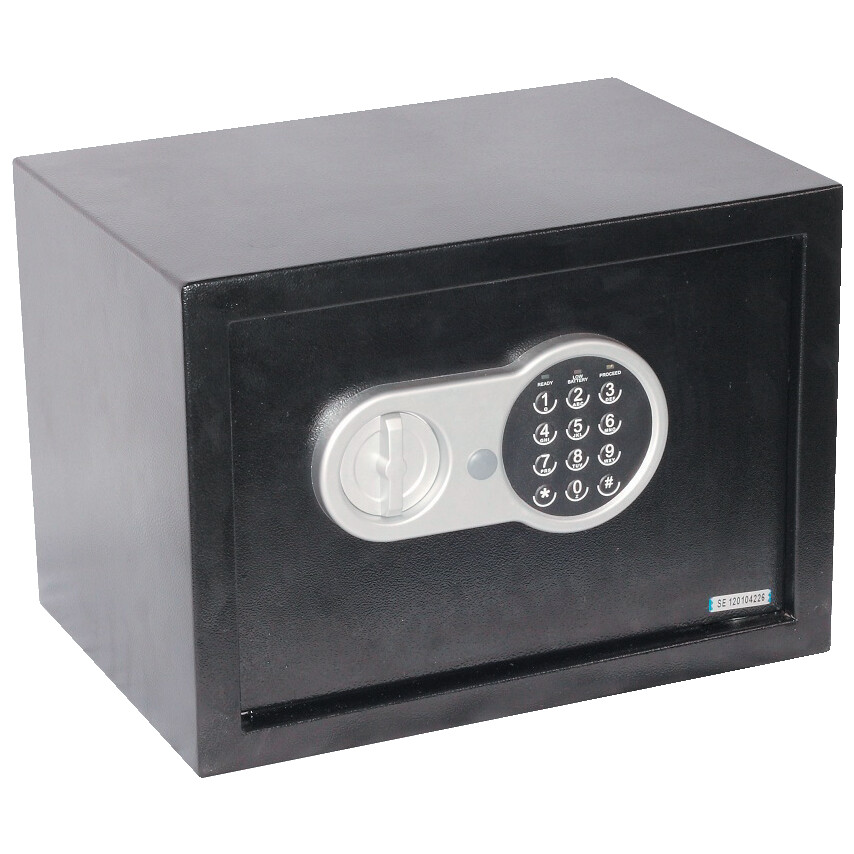 Acélszéf elektronikus kombinációs zárral, amely 3-8 számjegyű kóddal működik. Jelzőfények jelzik a nyitott állapotot, az alacsony töltöttséget és a figyelmeztetéseket. 20 mm-es záróreteszek, rejtett zsanérok és előre fúrt rögzítőpontok a padlóhoz való rögzítéshez. Tartalmaz egy vészhelyzeti nyitókulcsot és egy padlóvédő szőnyeget. Tökéletes kisméretű irodákba. Tartalmazza a szerelvényeket. 4 db AA típusú elemmel működik (tartozék). Méretek Külső (ma x szé x mé): 250 x 350 x 250 mm. Belső (ma x szé x mé): 246 x 346 x 190 mm. Tömeg: 9,7 kg. Méretek: 250 x 350 x 250 mm.