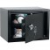 Mechanikus, kulcsos acélszéf értéktárgyak, jogi dokumentumok stb. tárolására. Kétszeresen záró acél záróreteszek, rejtett zsanérok és előre fúrt rögzítőpontok, hogy könnyen a padlóhoz lehessen rögzíteni vagy falra lehessen szerelni. 3 kulccsal. Méretek (ma x szé x mé): 200 x 310 x 200 mm. Szín: fekete. Tömeg: 6,5 kg.