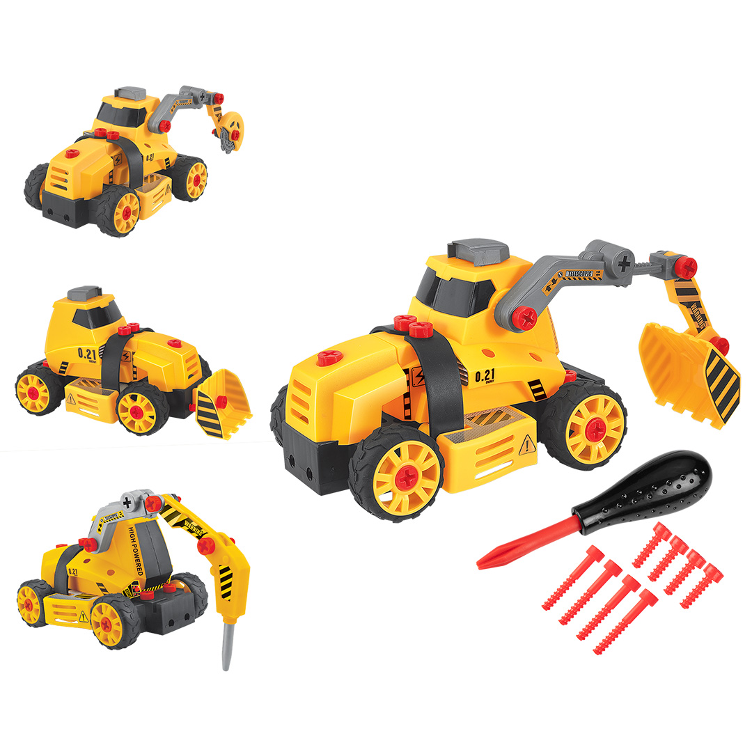 A NEO TOOLS GD041 4 az 1-ben gyermek kotrógép egy sokoldalú és lebilincselő játék, amely számos játéklehetőséget biztosít, és több szinten támogatja a gyermek fejlődését. A négy építőgéppé - buldózer, ütvecsapó kalapács, kotrógép gémmel és körfűrész - való konfigurálási lehetőséggel a gyermek nemcsak építkezhet, hanem megismerheti a járművek különböző funkcióit is, ami fejleszti a világ iránti kíváncsiságát és a képzelőerejét. A műanyag csavarhúzóval történő önszerelés lehetővé teszi a kisgyermekek számára, hogy gyakorolják a kézügyességet, a szem-kéz koordinációt és a logikus gondolkodást.