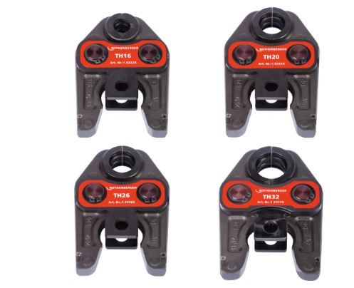 A ROTHENBERGER igazolt anyag- és gyártási minőségű préspofái alkalmasak fém és műanyag szerelvények rendszerkonform préselésére. Egy speciális keményítési kezelés, a DURA LAZR TEC technológia és a részleges lézeres keményítés használatával precíz és biztonságos préselés lehetséges hosszú élettartammal. Az eredmény: minimális kopás és 100%-kal több préselési ciklus, mint a korábbi változatok esetében. A hosszú távú korrózióvédelem továbbá garantálja a préspofák hosszú élettartamát. A nagy teherbírású, speciális acélból készült préspofák minden présgéphez használhatók 32–34 kN axiális tolóerővel.