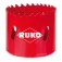 HSS biofém lyukfűrészek változó fogazású. A RUKO bimetál lyukfűrészek kézi- és oszlopfúrókhoz is használhatók. Oszlopfúró gépeknél csak kézi adagolást használjon.Könnyen megmunkálható anyagokkal a változó fogazás egyenletesebb vágást és kevesebb erőfeszítést biztosít. A vágás során fellépő alacsonyabb rezgés- és hőfejlődésnek köszönhetően akár háromszor megnövekszik az élettartam. Alkalmas ötvözetlen acélhoz (700 N / mm² szilárdságig), színesfém és könnyű fémek, műanyagok, gipsz, könnyűszerkezetek, rost, rétegelt lemez és fafeldolgozáshoz.