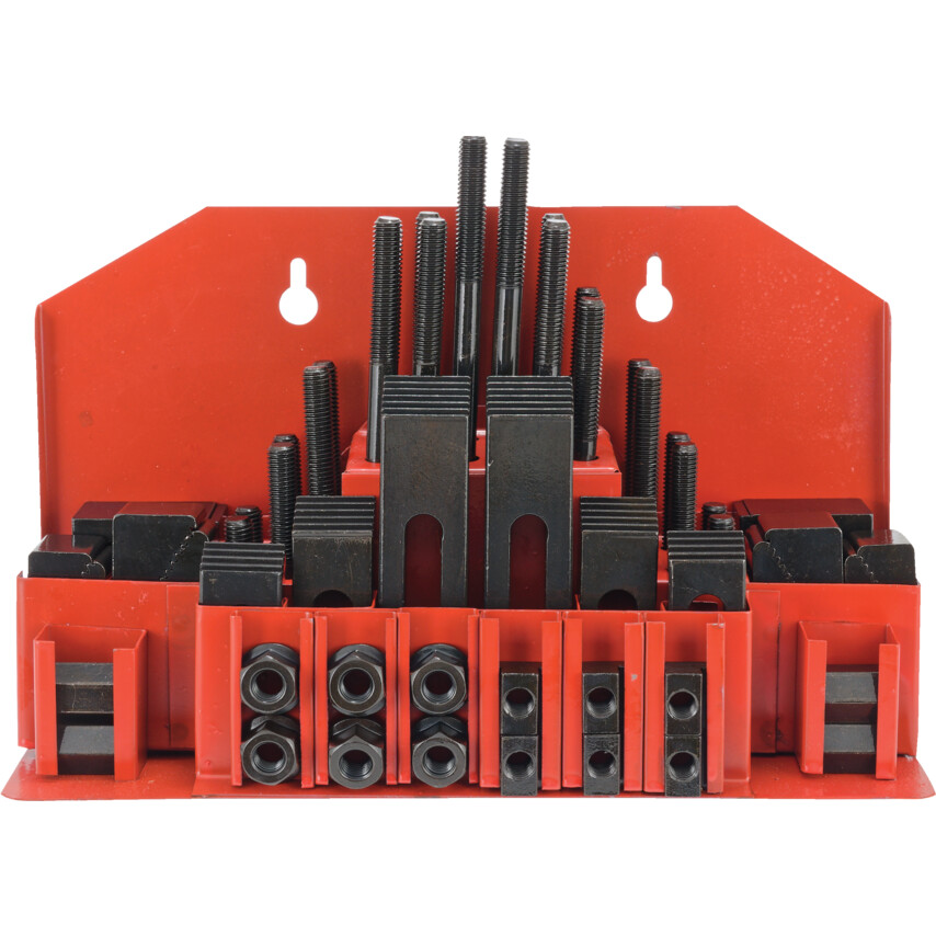 A beállítási idő megtakarítására és a legtöbb befogási probléma megoldására tervezték Minden befogótag kovácsolt és edzett, a blokkok pedig kiváló minőségű acélból készülnek a nagyobb termelékenység érdekében Minden alkatrész (a szegecsek kivételével) hőkezelt, és fekete oxid bevonattal van ellátva a fokozott teljesítmény érdekében A könnyű tárolás érdekében falra szerelhető vagy munkapadokra szerelhető acéltartókban szállítva (kivéve az M16-os készletet, amelyet fadobozban szállítunk) Az összes metrikus T alakban hornyolt szélességhez alkalmas számos felhasználás esetében