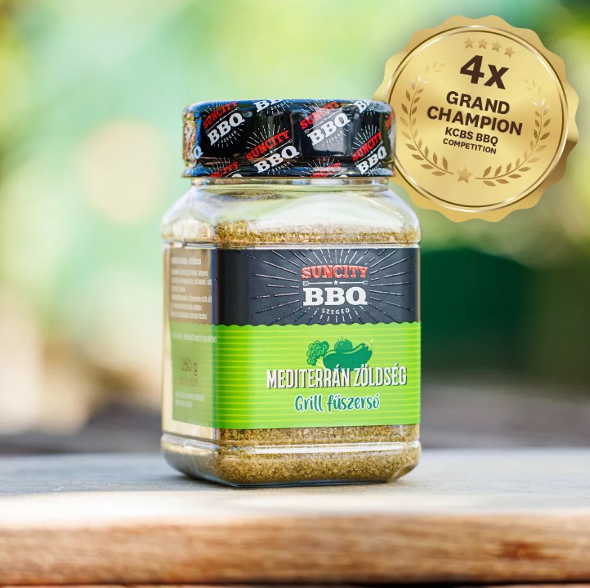 • A mediterrán grillezett zöldségek a nyári partik királyai! Lazák, könnyűek és finomak. Ezzel a grill fűszersóval hazahozhatod az egész mediterráneumot a kertedbe, olyan pazar zöldséges fogásokat rakhatsz az asztalra, hogy még a húsok is eltörpülnek mellettük! Kakukkfű, bazsalikom és még több zöldfűszer teszi a legfantasztikusabb fogássá bármelyik zöldséget!
