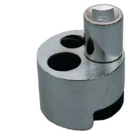 Krómmal ötvözött acél test nikkel bevonattal. Feketeoxidált felületű rögzítő kerék. Használathoz a tőcsavarra kell helyezni a kihajtót, majd egy 1/2"-os csatlakozású hajtószárral el kell forgatni a csatlakozót. A rögzítő kerék így rászorul a csavarra és elfordítja. Külső átmérő: 58 mm, Magasság: 65 mm